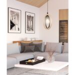 • Minimalist open oval frame with black and wood finish in a modern look.