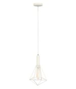 • Industrial-style pendant light featuring a curved birdcage-inspired design.