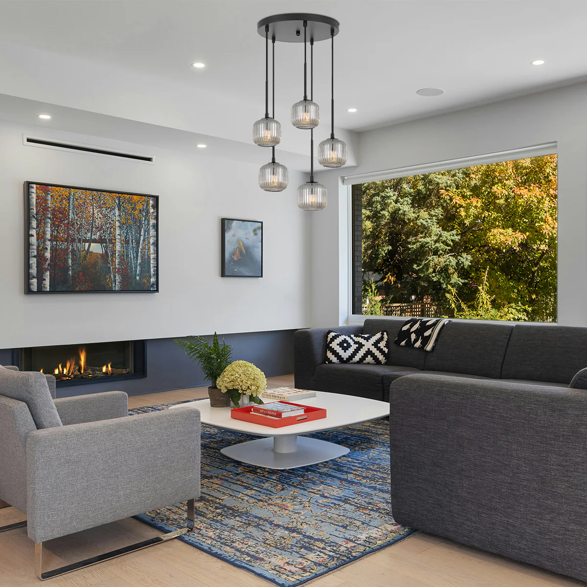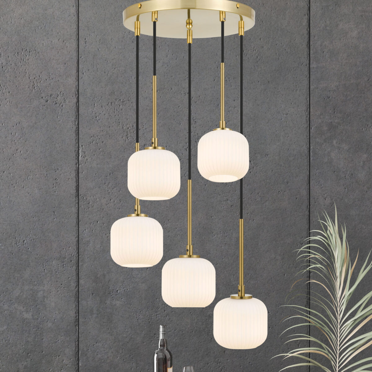 • Bobo 5 lights round base glass pendant is early century ribbed barrel glass gives a minimalist allure and sleek style for any space in your home.