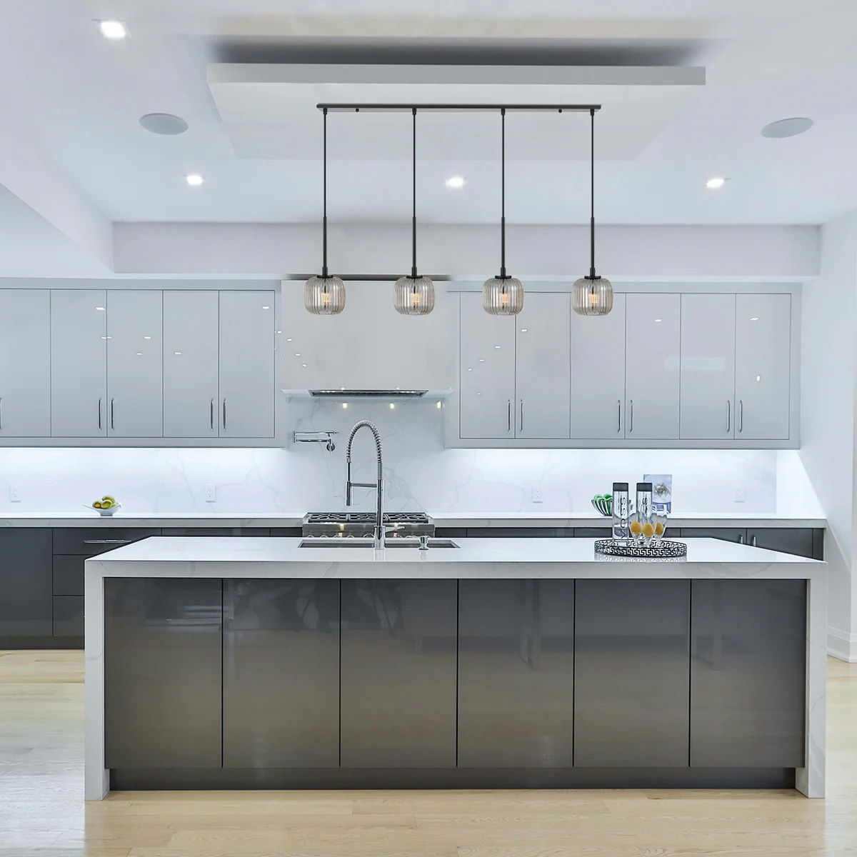 • Bobo 4 lights bar kitchen benchtop pendant is early century ribbed barrel glass gives a minimalist allure and sleek style for any space in your home.