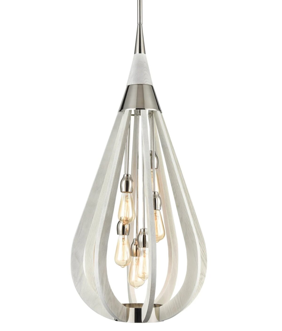 • Stylish teardrop-shaped pendant light featuring a wooden frame with polished metal accents, creating a striking and elegant look.