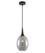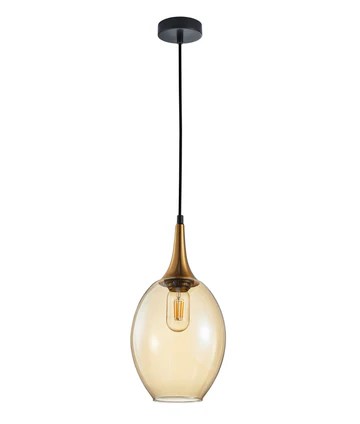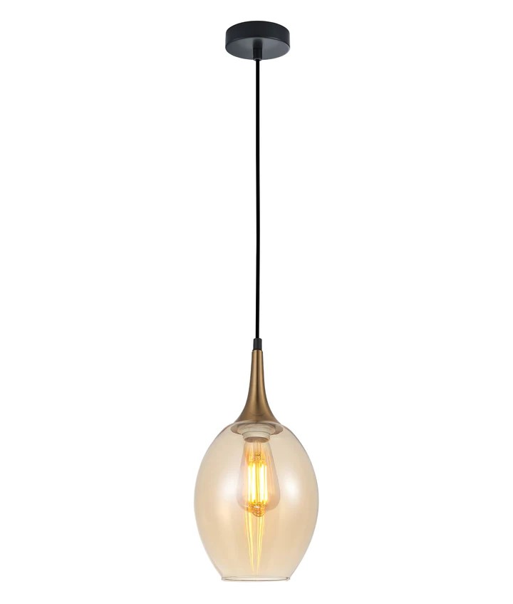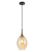 • Wine glass-shaped pendant light with a retro-inspired aesthetic.