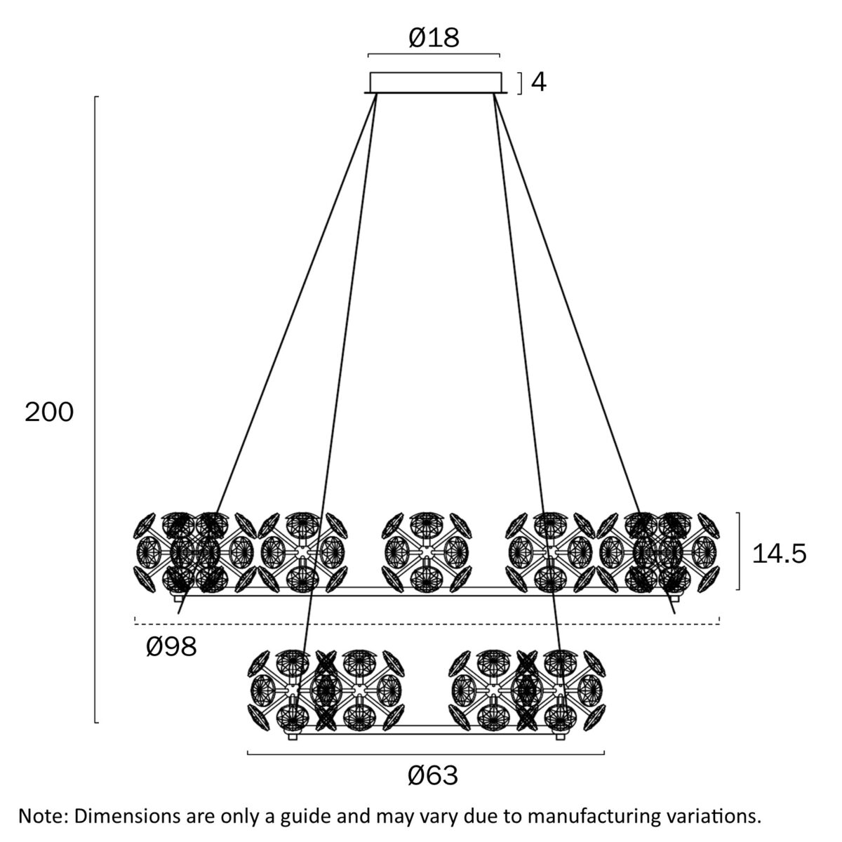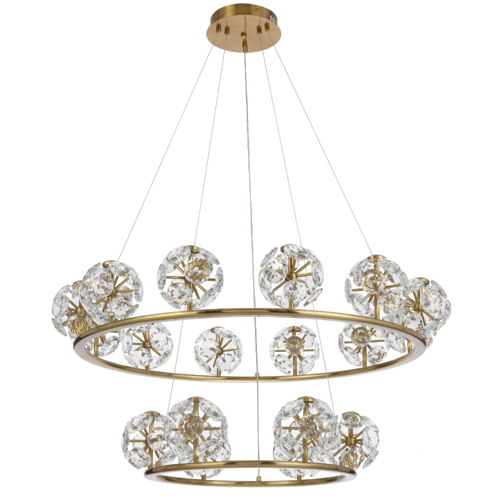 • Catania 18 light integrated 3000K LED crystal pendant is an exquisite lighting fixture crafted from iron and adorned with crystal accents.