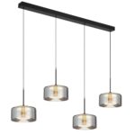 • The pendant features a sleek sand-finished fixture paired with sophisticated smoke glass shades.