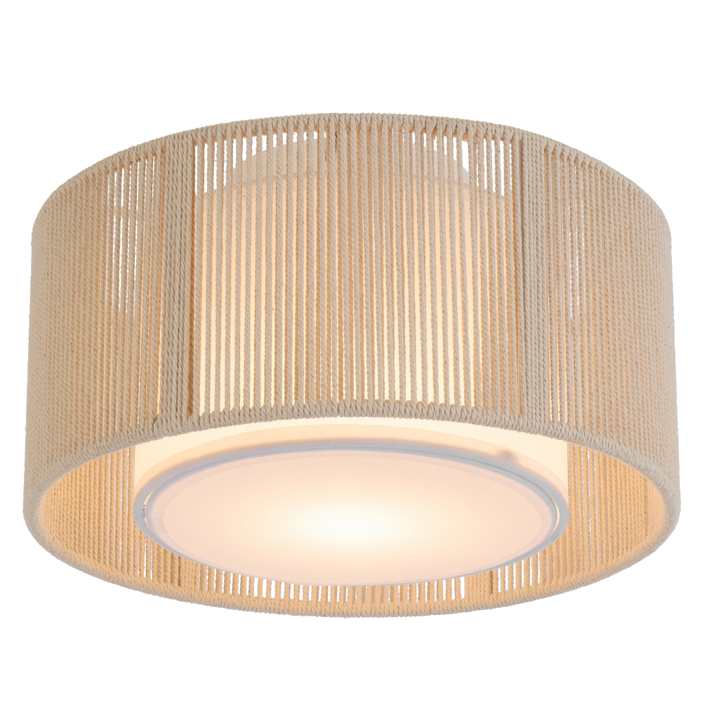 • Wrapped in natural-toned string with a soft white diffuser.