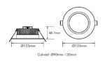 • DL1583 Sink In satin chrome super bright 15w round 90-120mm cut-out Tri-colour dimmable down light.