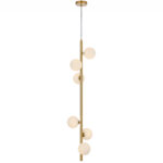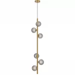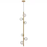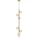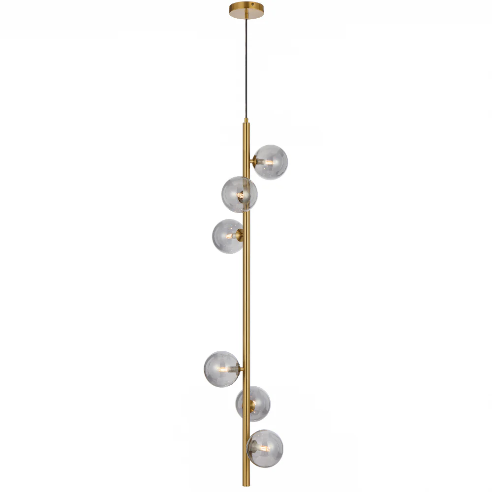 • Available in black and antique gold finishes. It features an elegant design with six lights positioned along a slender central rod.
