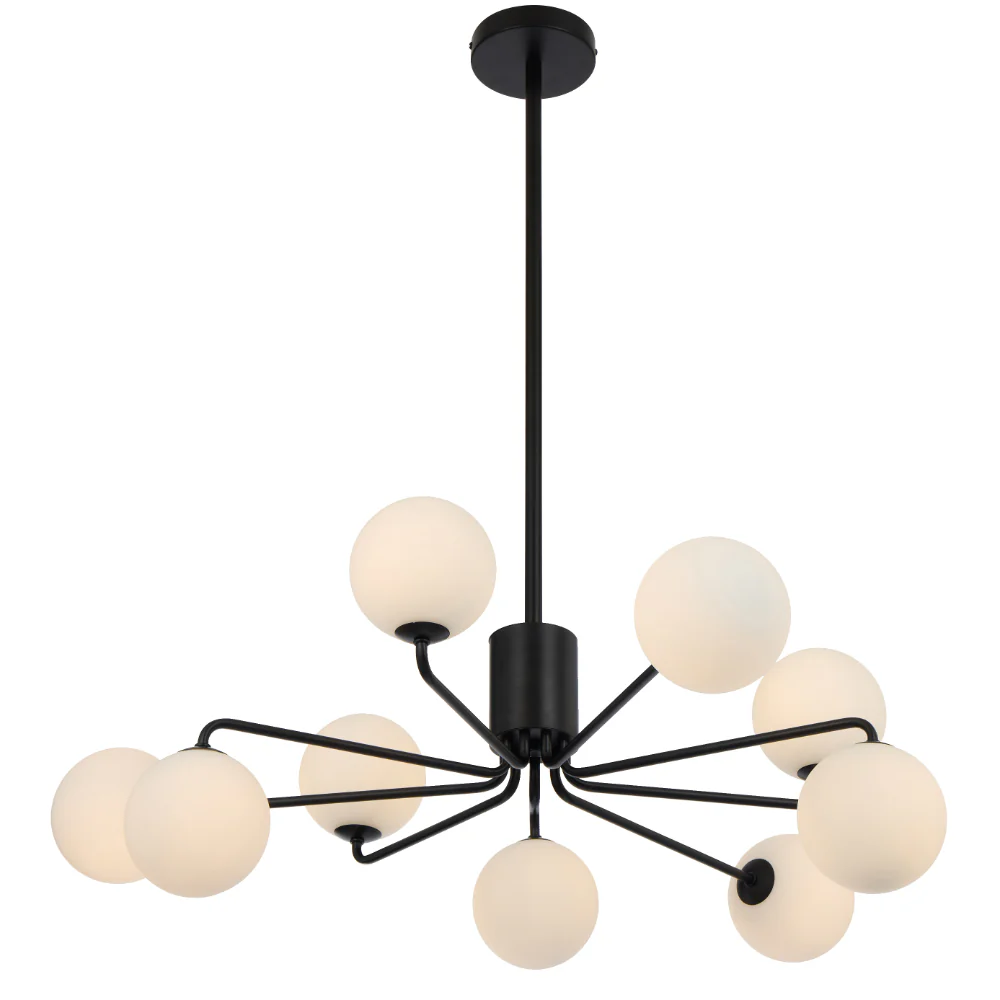 • Felton 9 light black frame pendant is a modern elegance seamlessly blends with versatility.