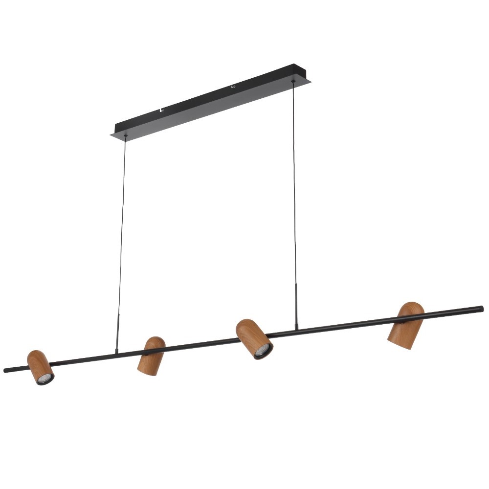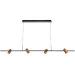 • Kindle 4 light parallel adjustable shades pendant features an iron construction with painted shades that give a timber look.