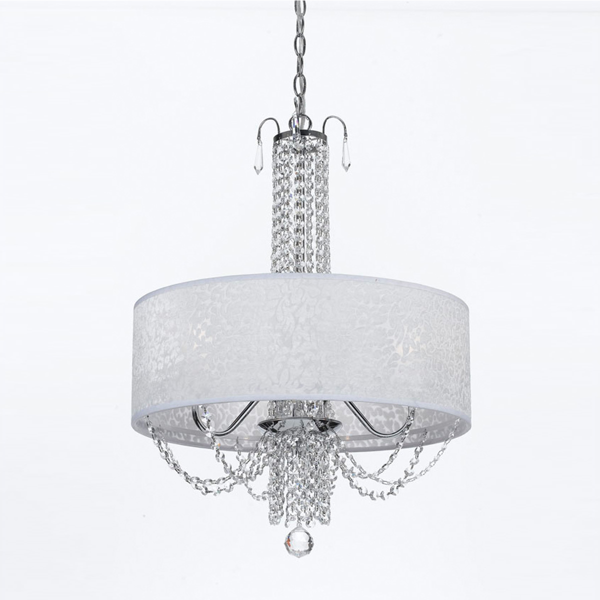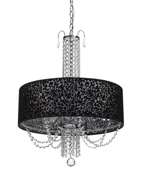 • Featuring a classic, Chrome finish, a White & Black patterned fabric shade with Crystal Hanging add warmth and sophistication.,