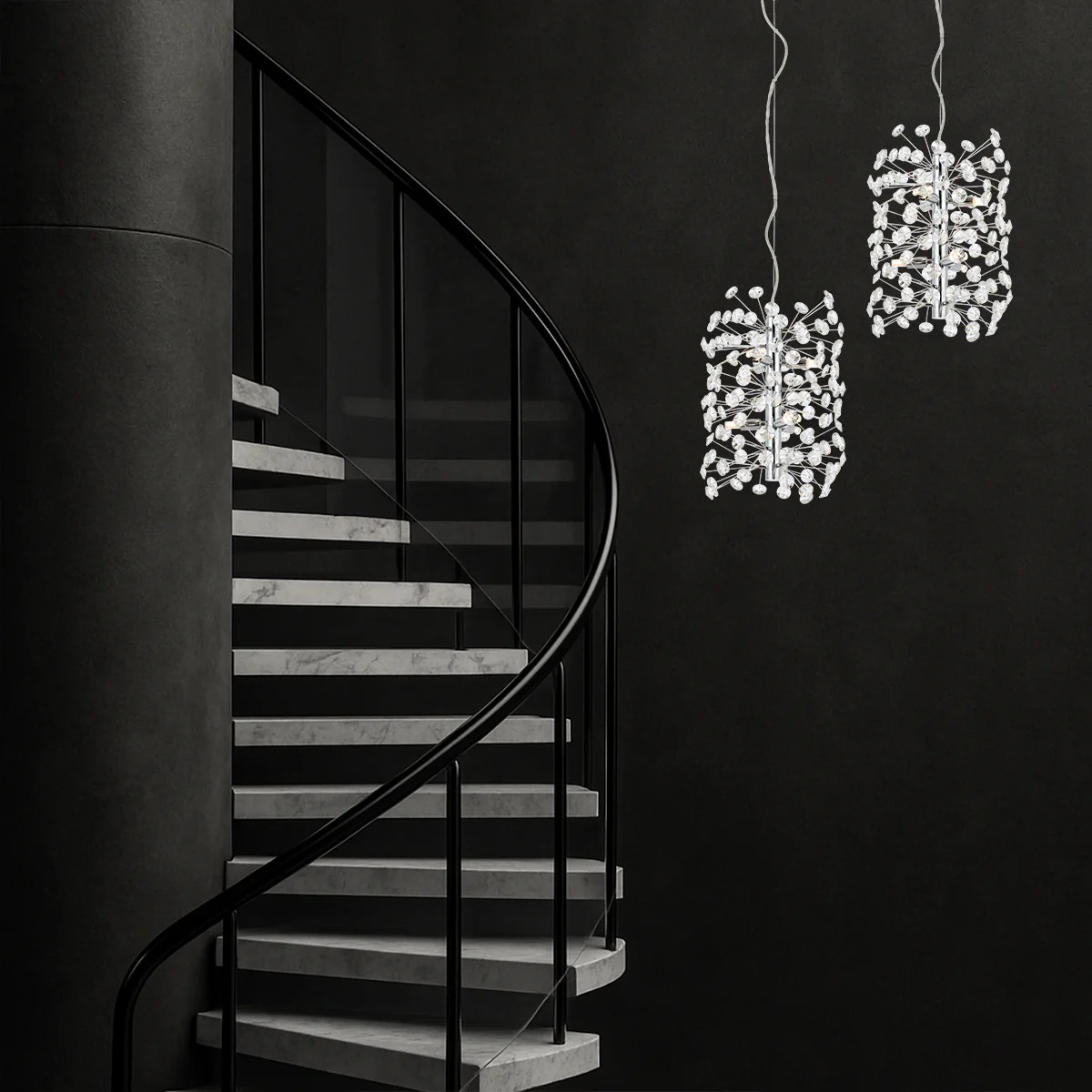 • Lerida 6 vertical shape modern crystal pendant is a stunning masterpiece, where the raw strength of iron meets the ethereal beauty of crystal.
