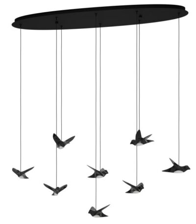 Paratebueno 390055 LED Black Bird-Shape Dimmable Small 8 Lights Pendant