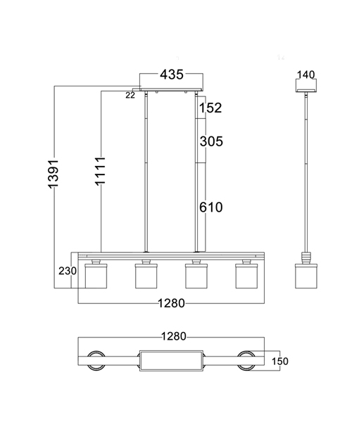 • This pendant is the perfect hanging light for the dining room as it is designed in 4 Globes, long shape and can thus provide extensive illumination of a table.
