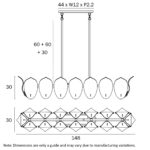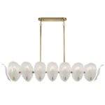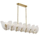 • Monte 16light brass frame rectangle pendant lighting collection exudes elegance with its refined brass frame and delicate frosted glass accents, reminiscent of natural leaf formations.