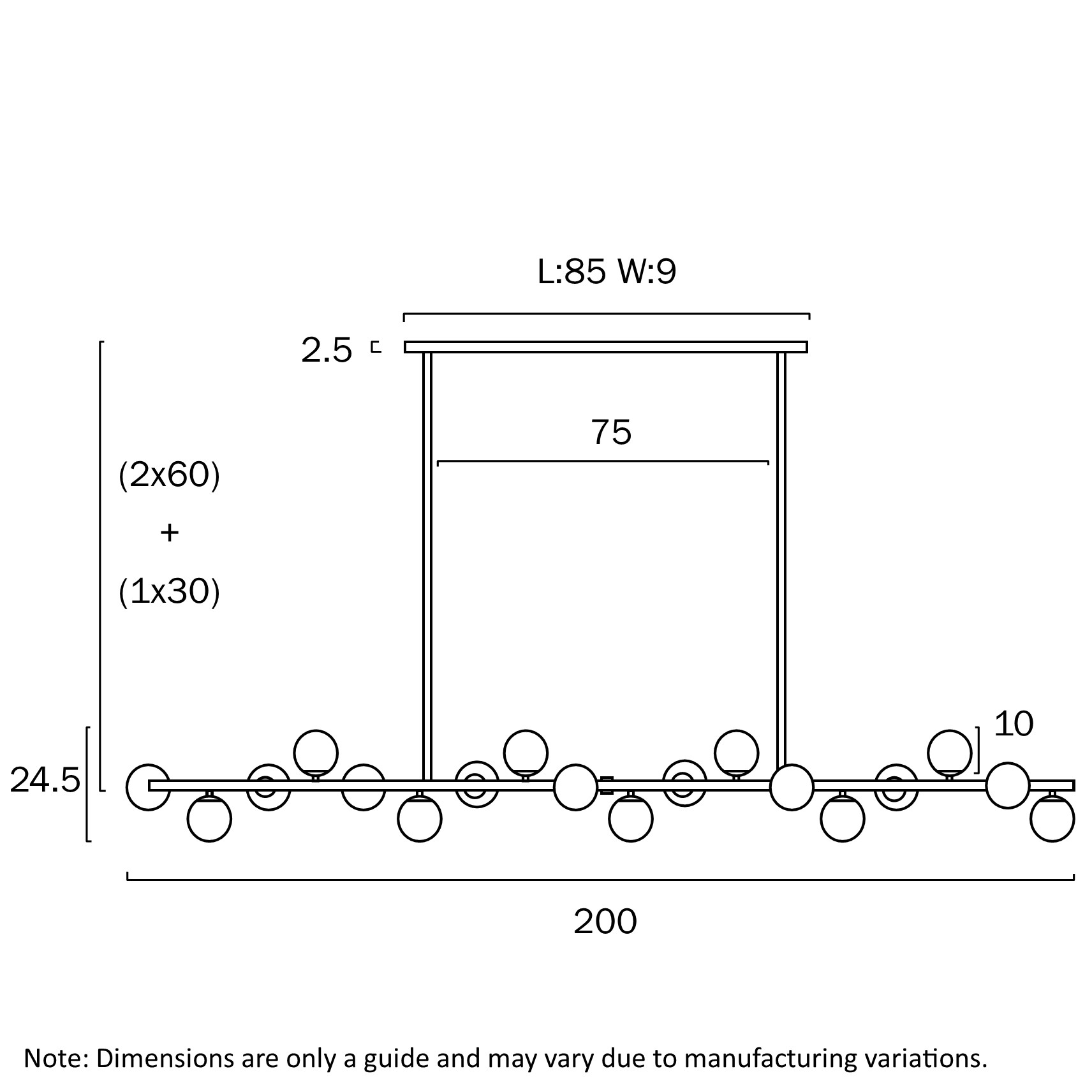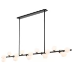 • This linear suspension is simple and striking, with just the right mix of mouth-blown glass shades positioned around the central body.
