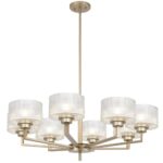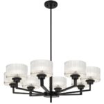 • Moreno II 8 light rod iron glass pendant offers a sophisticated blend of iron and glass construction.