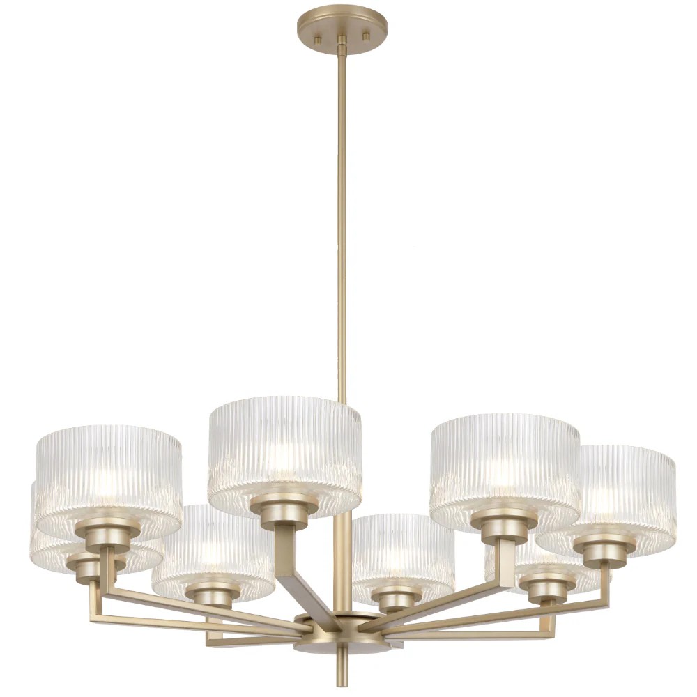 • Featuring ribbed glass shades that maintain a consistent size across all fittings, this collection ensures a cohesive look throughout your home.