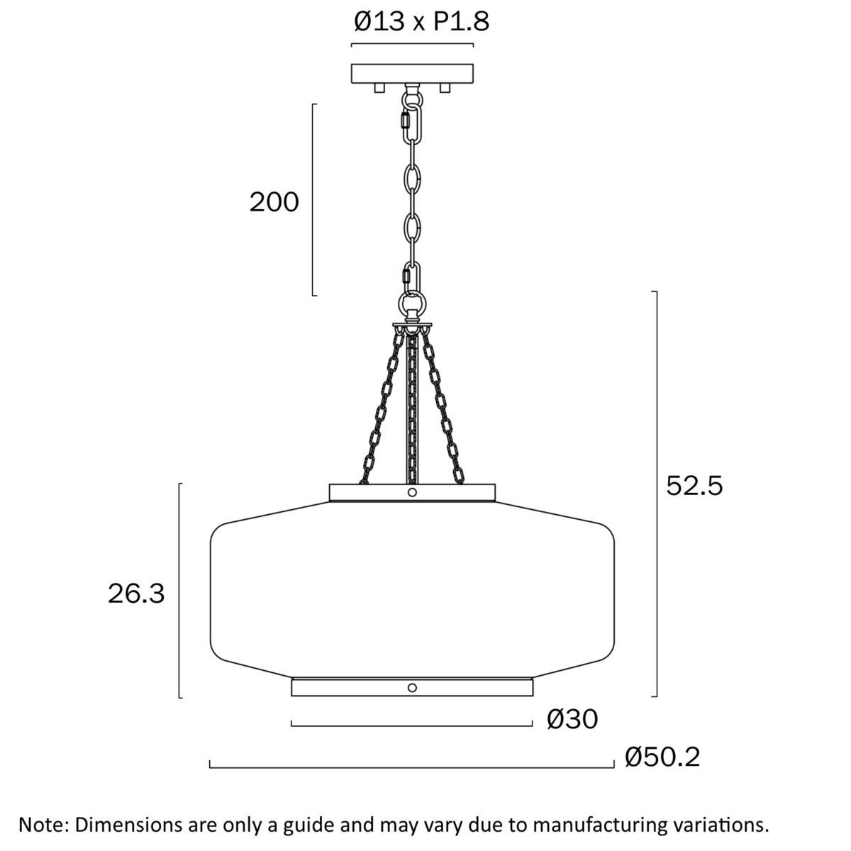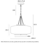 • Suspended by a 2-metre adjustable chain, it offers versatile height customisation.