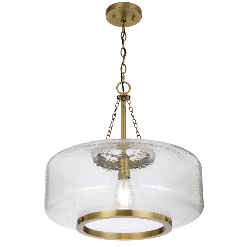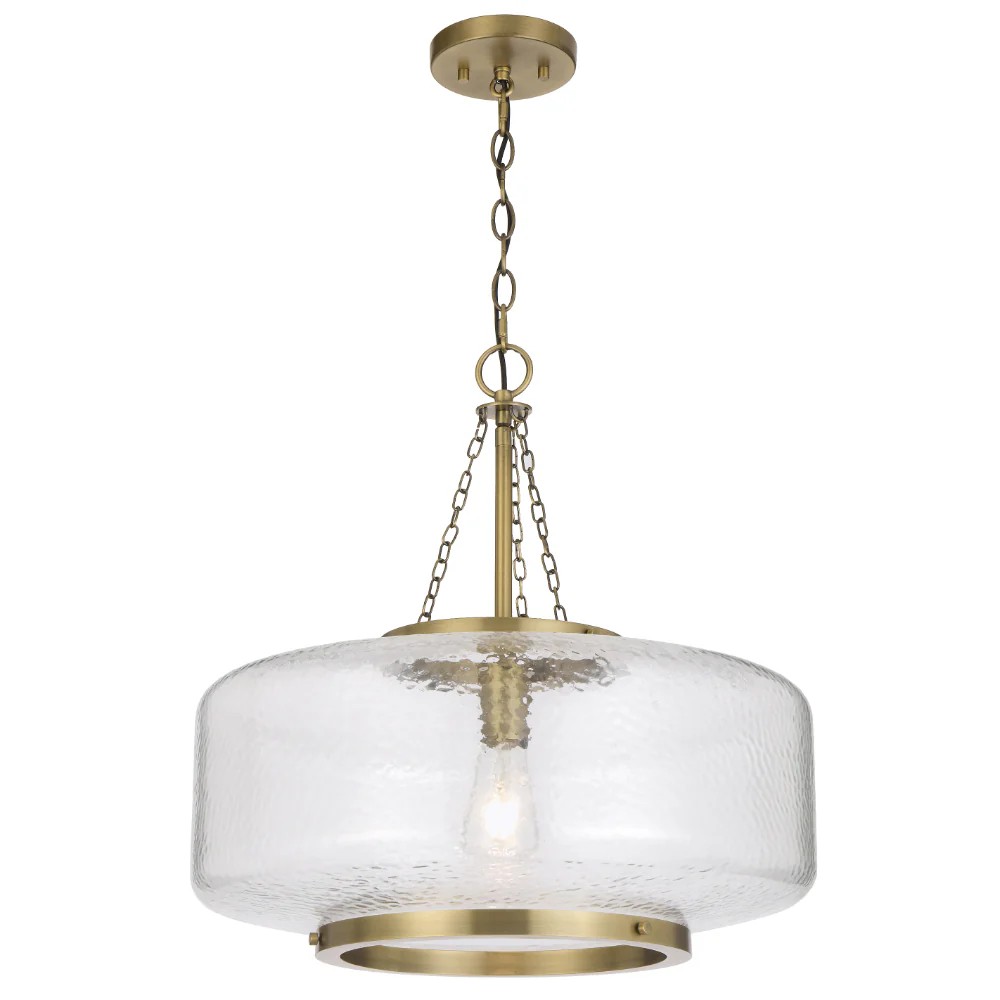 • Mornet Drum Shape Texture Glass Single Pendant shade showcases a bold, contemporary silhouette with a wide.
