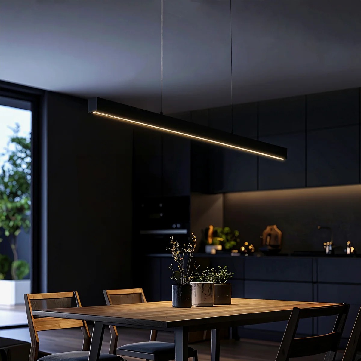 • Navaro II 1200mm 3CCT integrated LED pendant Elevate your space with the Linear Suspension, a perfect blend of style and versatility.
