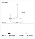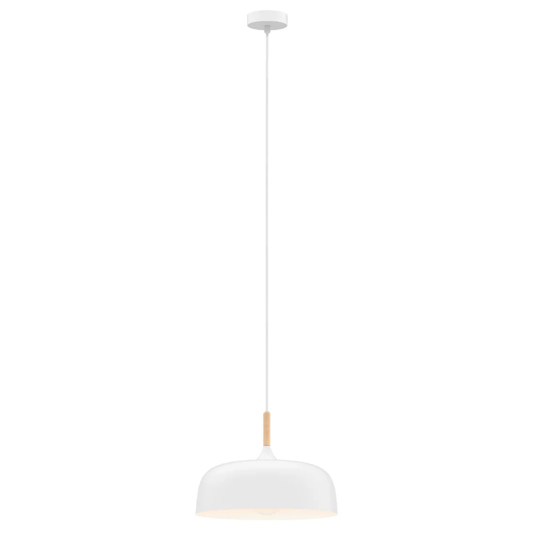 • The Olena metal powder-coated pendant is available in black and white with a wood top.