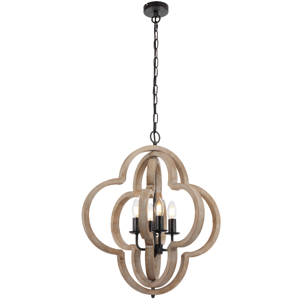 • Omar 4 light wooden pendant offers a perfect blend of French Provincial style and modern elegance.