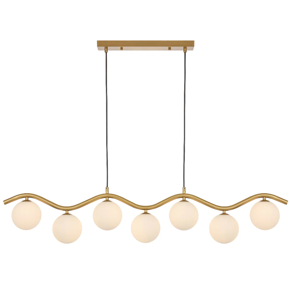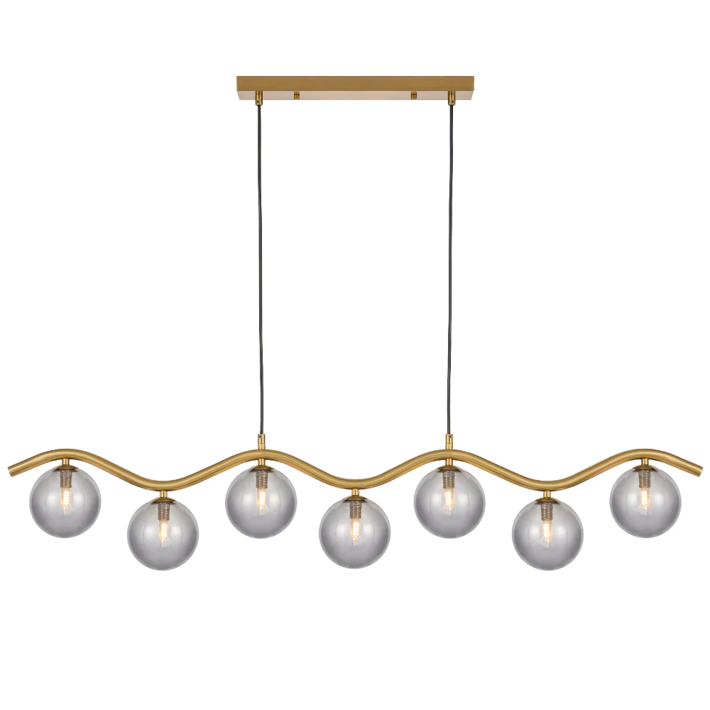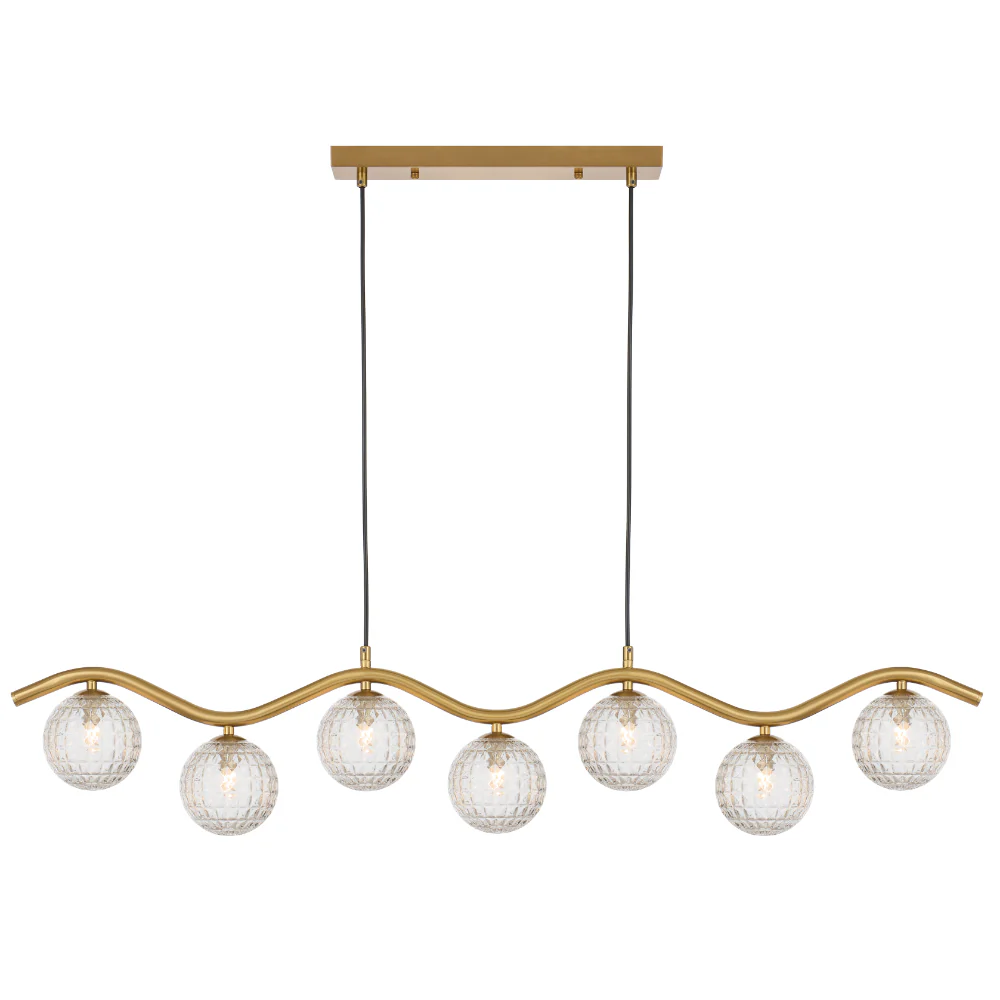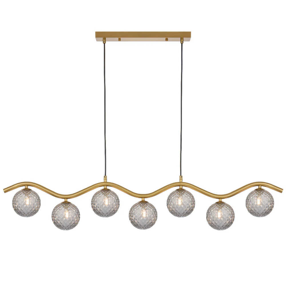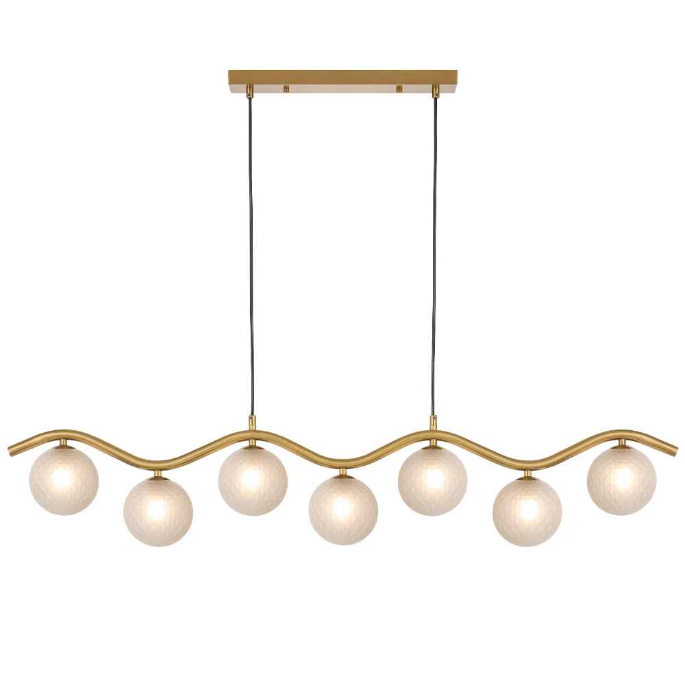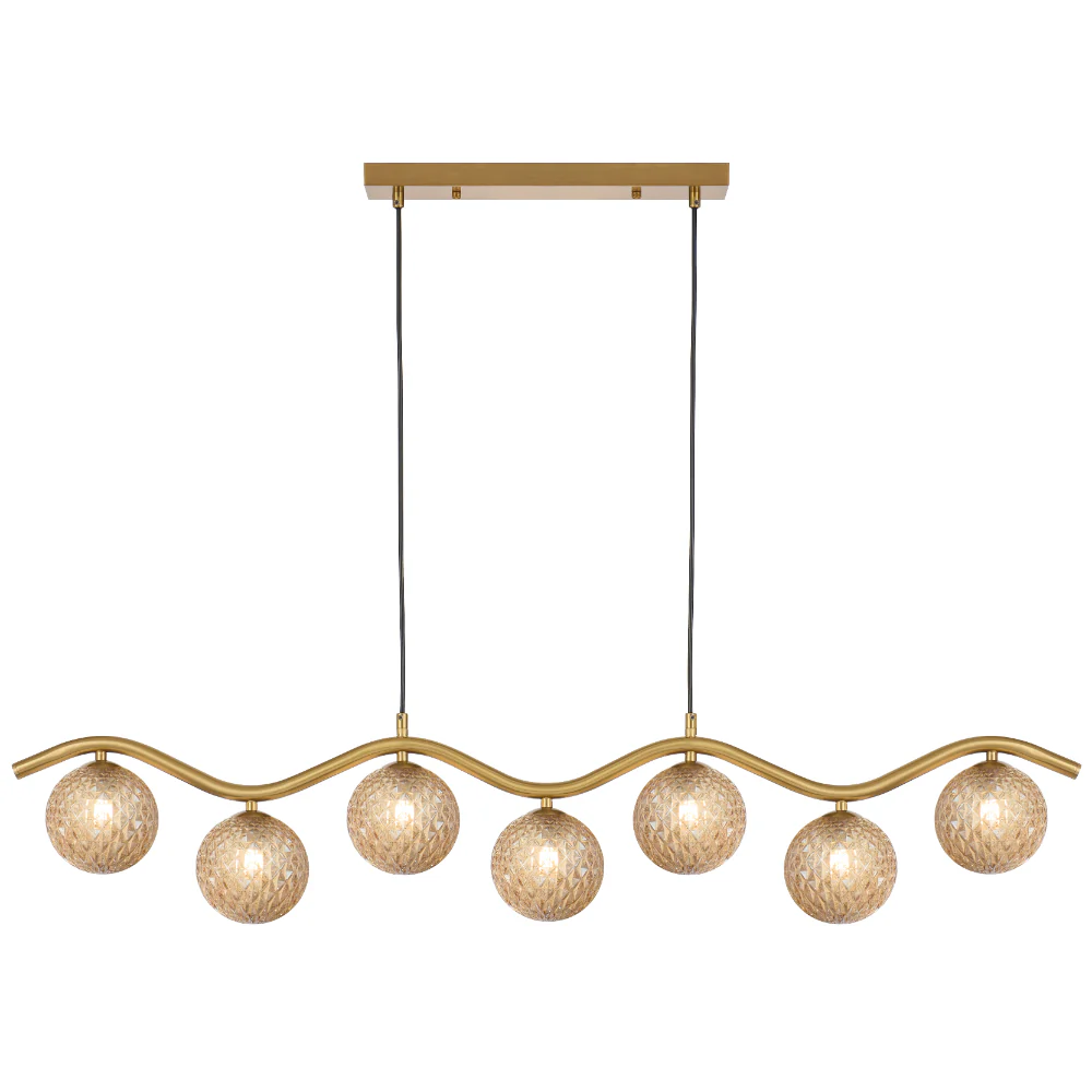 Orton 7 Light Antique Gold Wavy Frame Kitchen Benchtop-Dinning Table Pendant