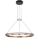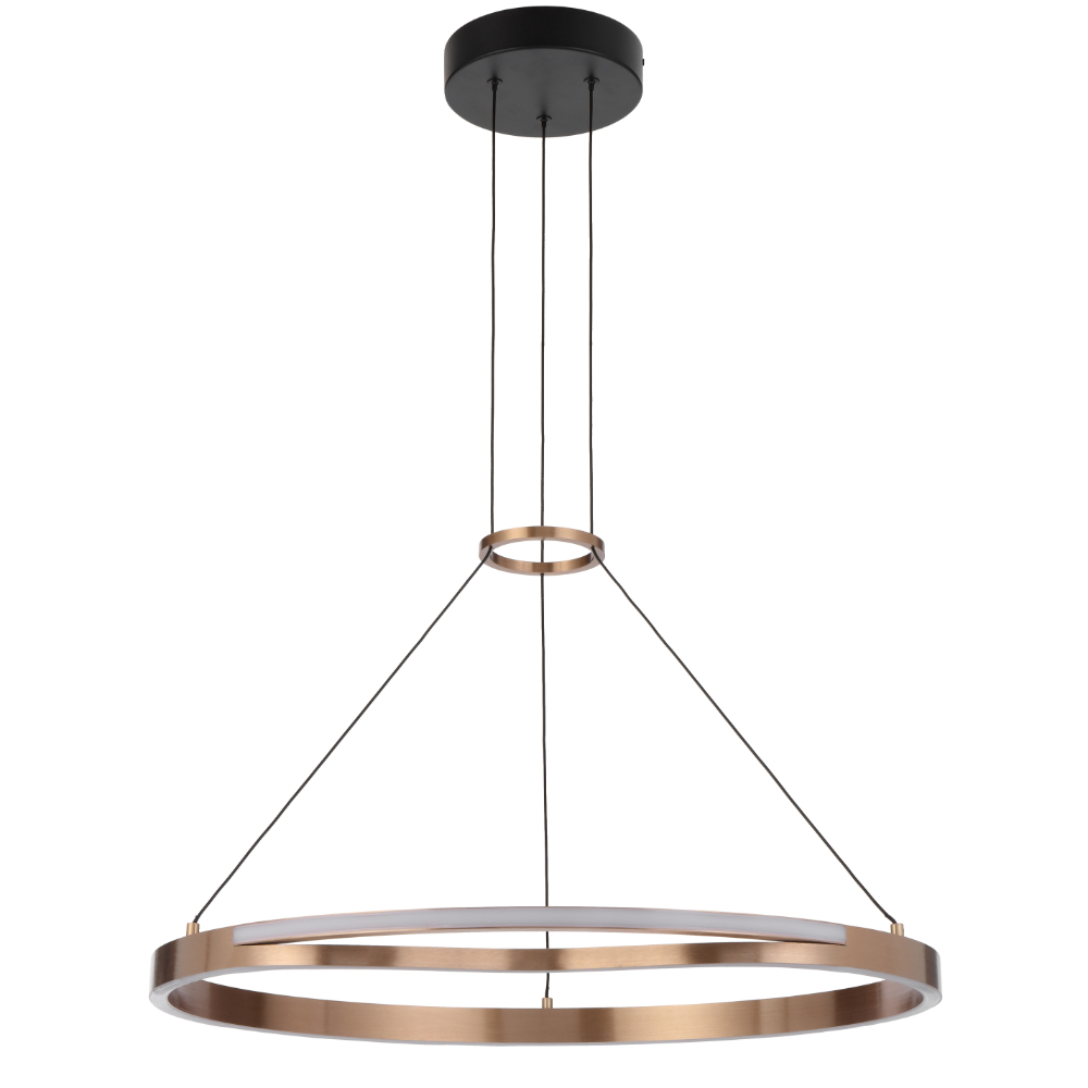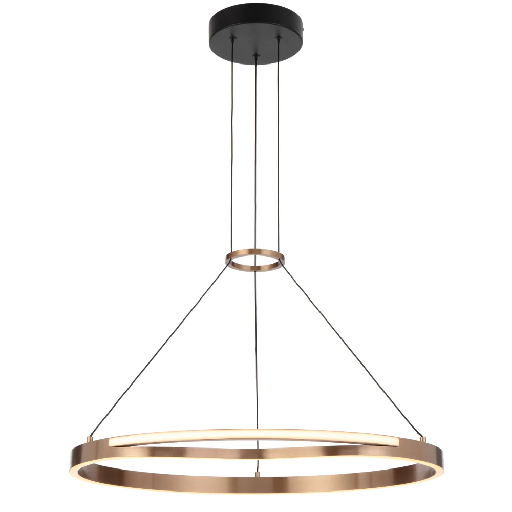 • Ostrom 650mm gold round ring dimmable integrated LED pendant boasts a captivating coffee gold hue, enhancing any space with its elegant allure.