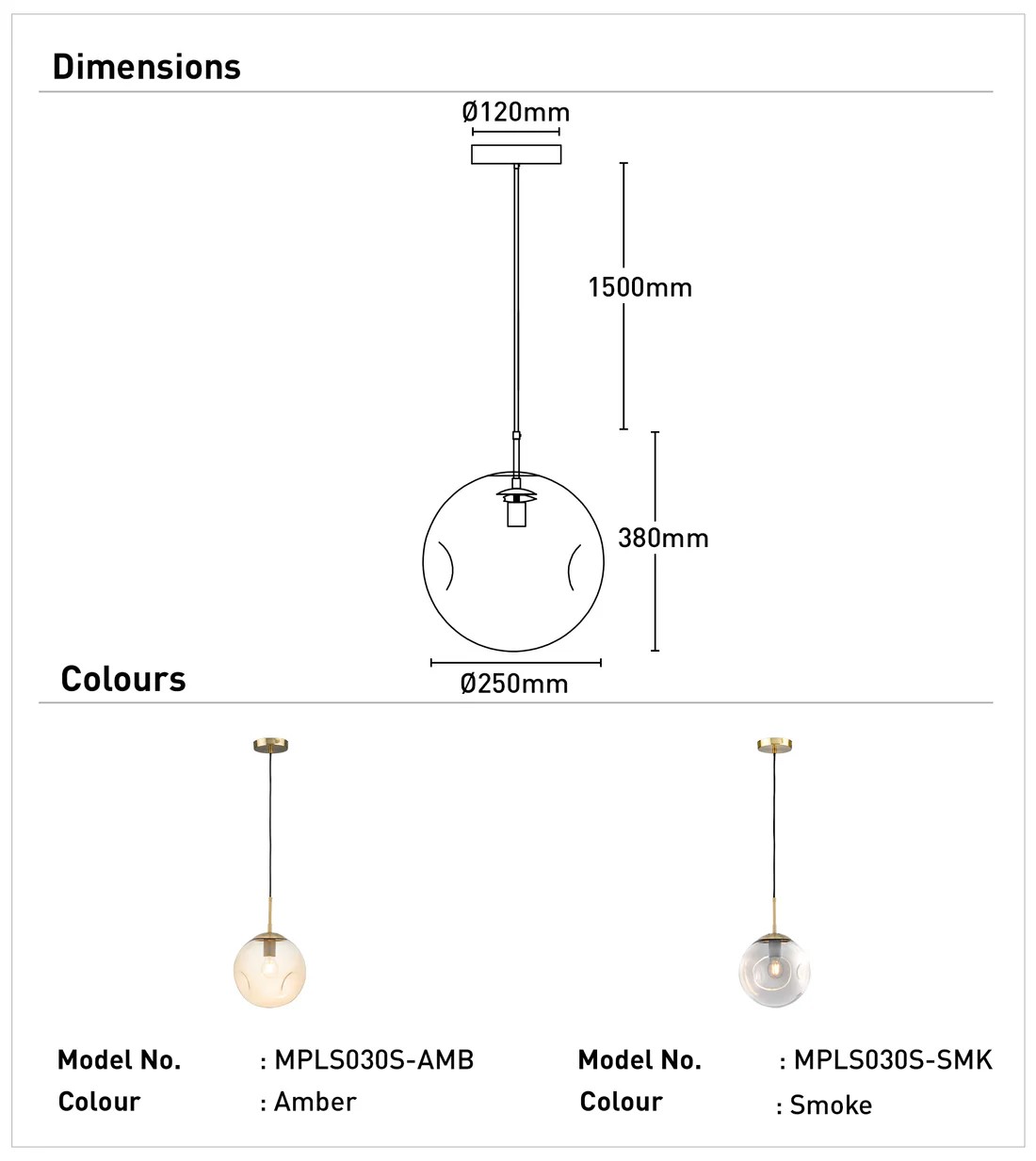 • One of the most striking lighting fixtures available is the Paddington Pendant light, Available colours are amber and smoke glass globe shade with antique brass metalware. This perfectly spherical pendant light has a diameter of 250mm and will add style to your space while illuminating it.