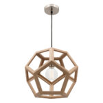• 1 light natural timber pendant with brush chrome metalware.