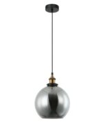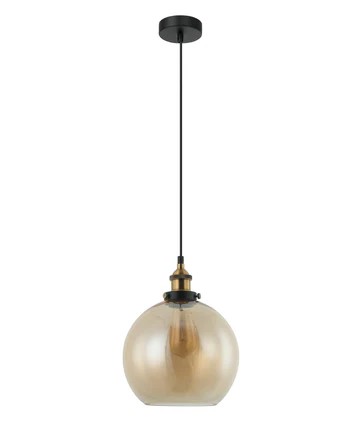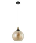 • Elegant pendant light with a wine glass-inspired shape and antique brass lamp holder base with black cord base.