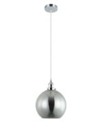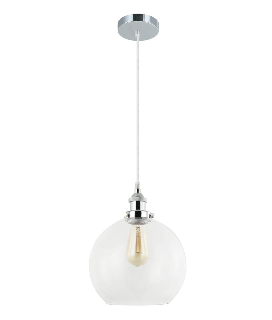 • Elegant pendant light with a wine glass-inspired shape and chrome lamp holder base with black cord base.