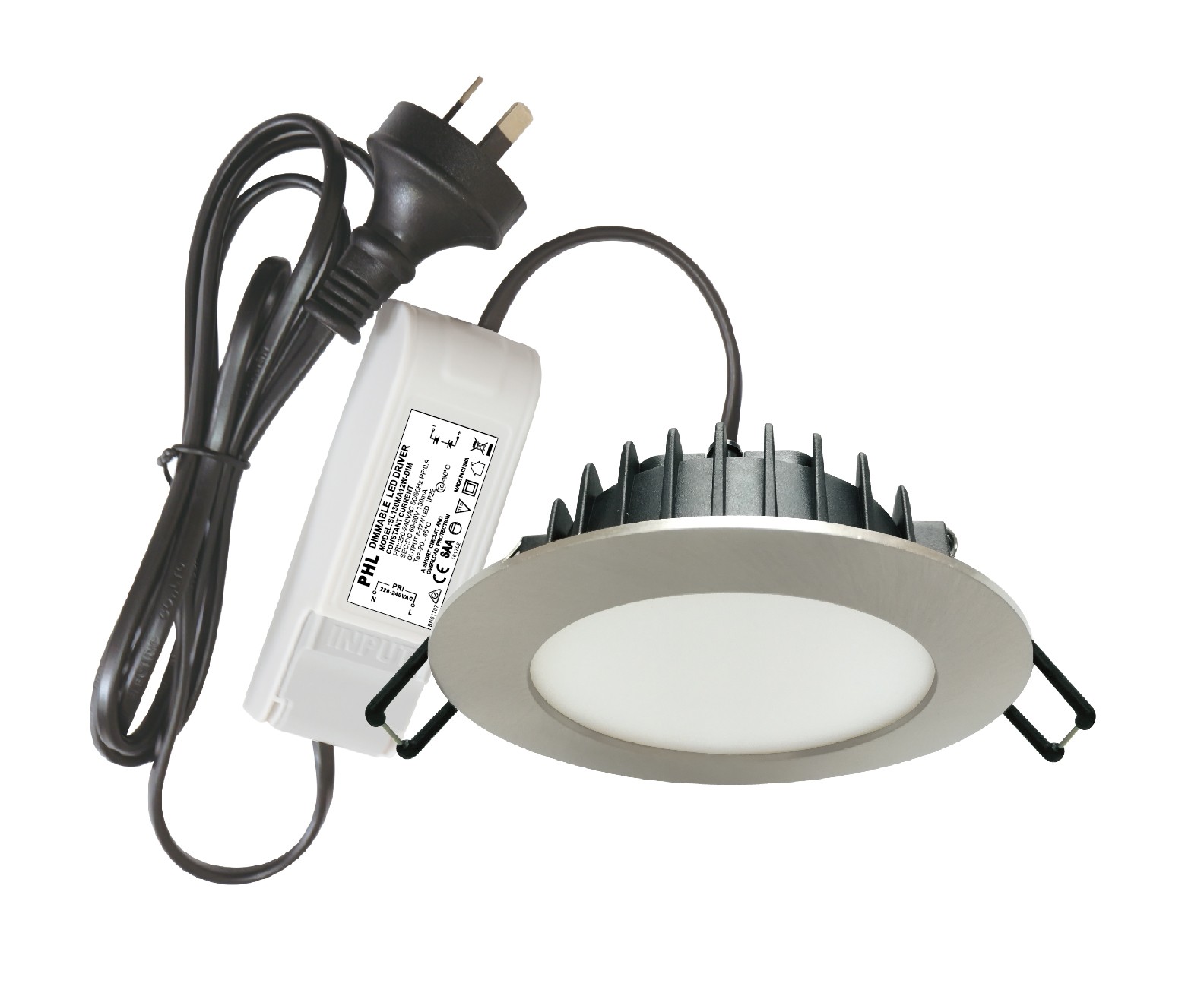 • PHL902 Tri-colour flat face bright 12W round 90mm cut-out complete with Led dimmable driver down light got DIP switch at the back of the down light to select colour of your choice from warm white to cool white and day light.