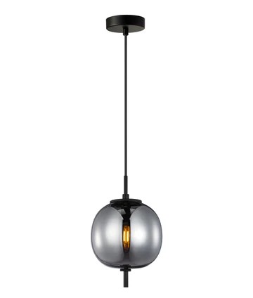 • Modern pendant light with a sleek, round shape and opal matte or smoky black mirror finish.