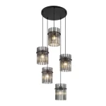 • Quilo 5 Round Plate Black Smoke Glass Rod Pendant designed to enhance any space with contemporary flair.