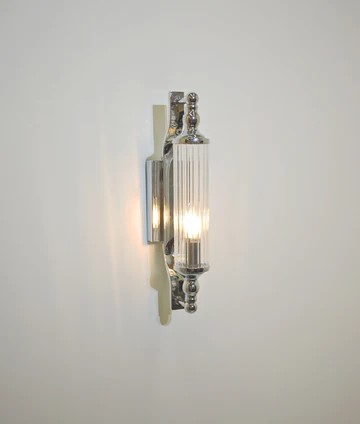• Tubular-shaped clear glass wall light with a sleek, minimalist design.