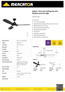Raptor 1312mm DC Ceiling Fan With Remote Control Original price was: $450.00.Current price is: $269.00.