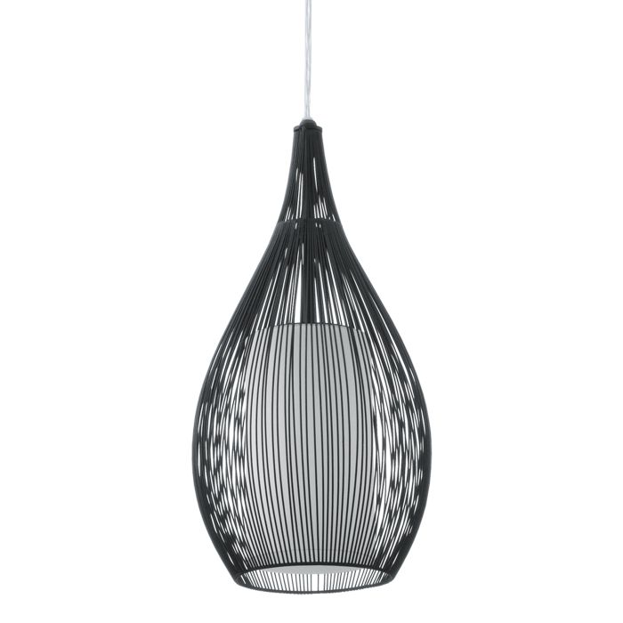 • Contemporary pendant range features an outer wire cage with inner opal satinised glass. shaped shade, ideal for modern interiors.