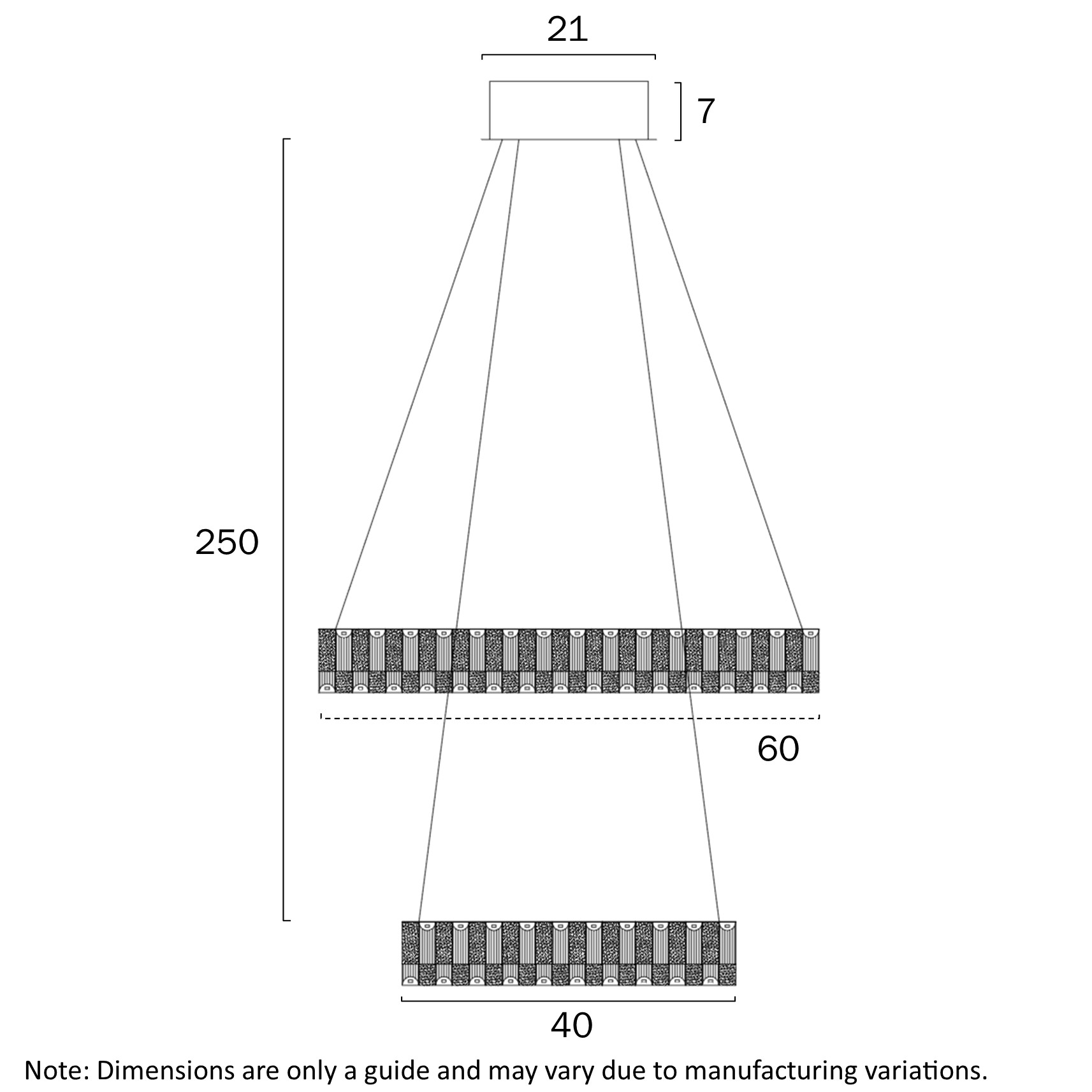 • Rios 2 tier 48W 3cct led crystal pendant with dimmable Bluetooth remote elevates the look of any space.