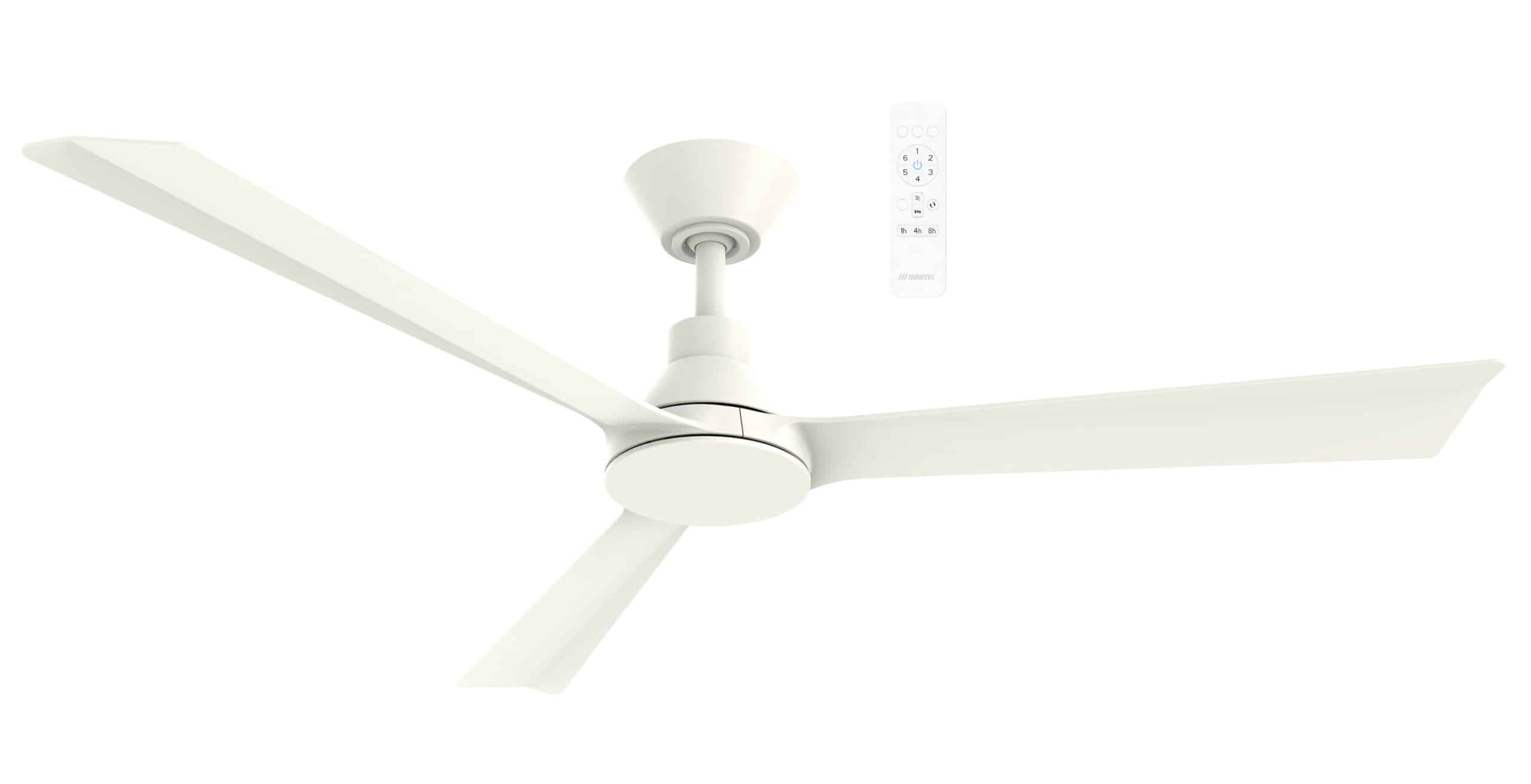 • Riviera 52″ offers a sleek design with a modern touch. This fan features clean lines and is available in matt white- matt black &