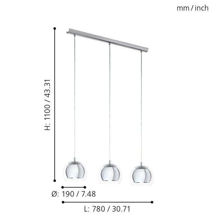 • you can customise the drop to hang at the appropriate height, whether over a kitchen island or in a formal dining room.