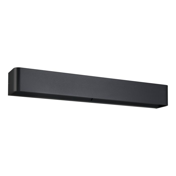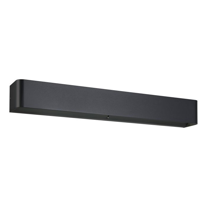 • A wall light is made of black structured powder-coated die-cast aluminum.