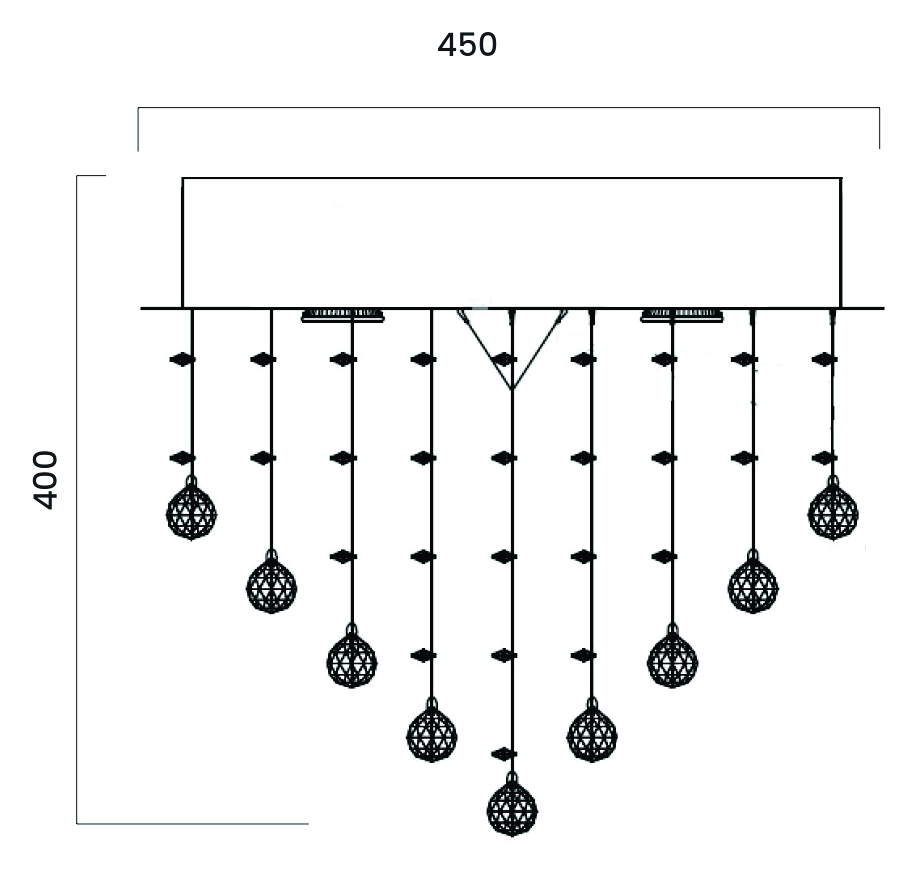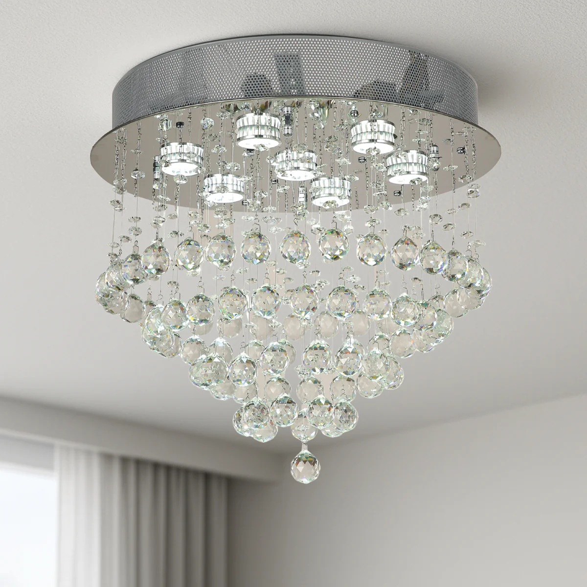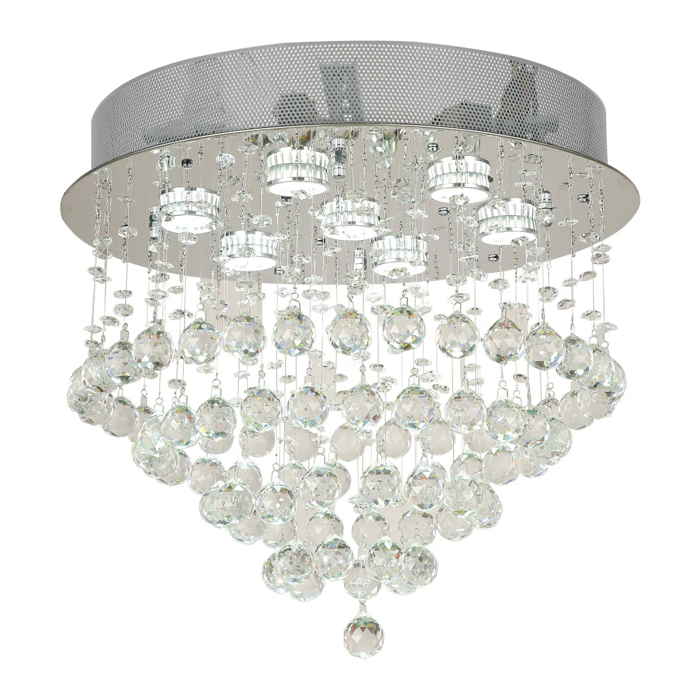 • The fixture is pre-trimmed with the crystal strands of fixed lengths, mounted to a precision-cut stainless steel ceiling plate.