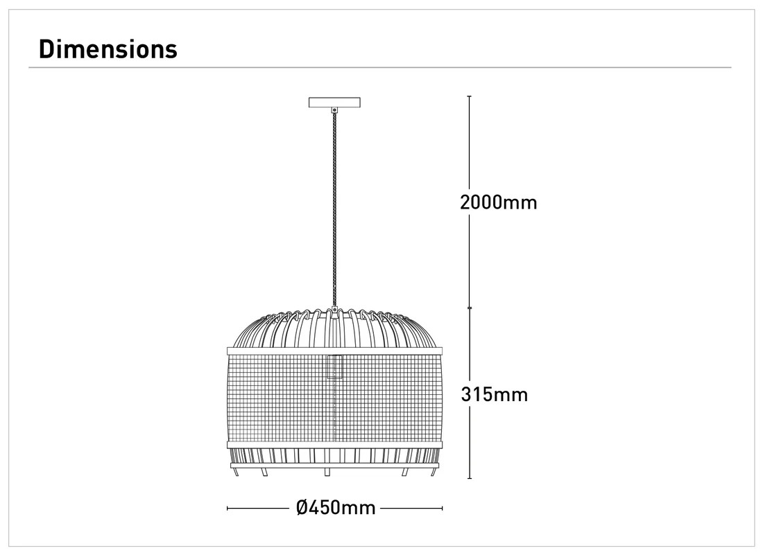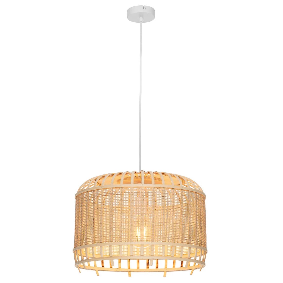 • Sefina Small Single Natural Bamboo Pendant Light shade comes with a white fabric cord.