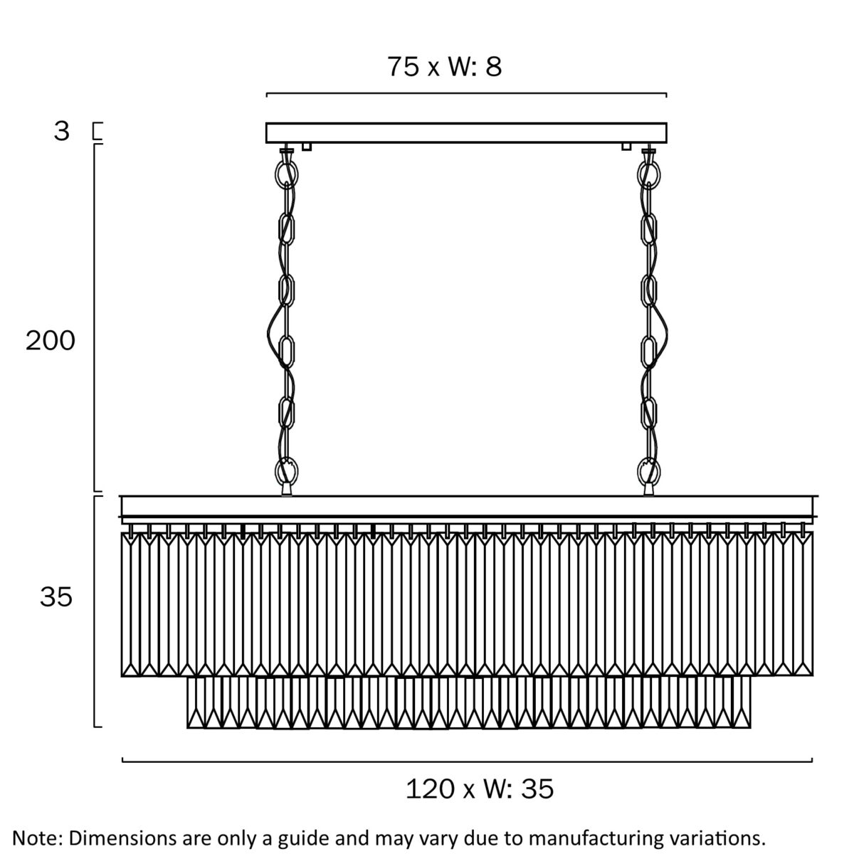 • Serene 13-light parallel shape crystal pendant offers a touch of glamour, drawing inspiration from classic Art Deco design.