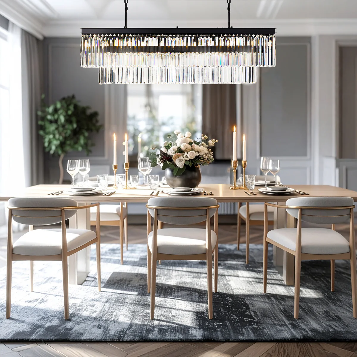 Serene 13 Light Parallel Shape Dining Table Crystal Pendant