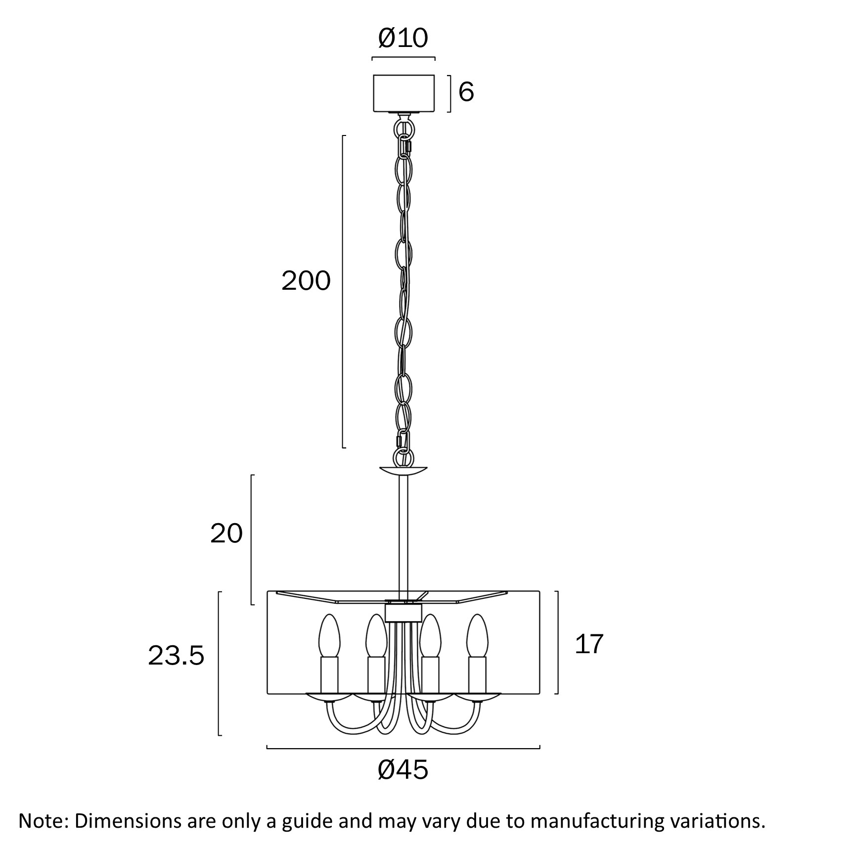 • Designed for versatility, the Shiron comes with a 2-metre chain and is fully height adjustable, allowing you to customize it to suit your space perfectly.