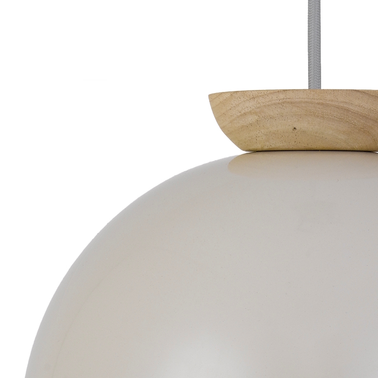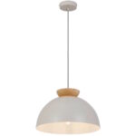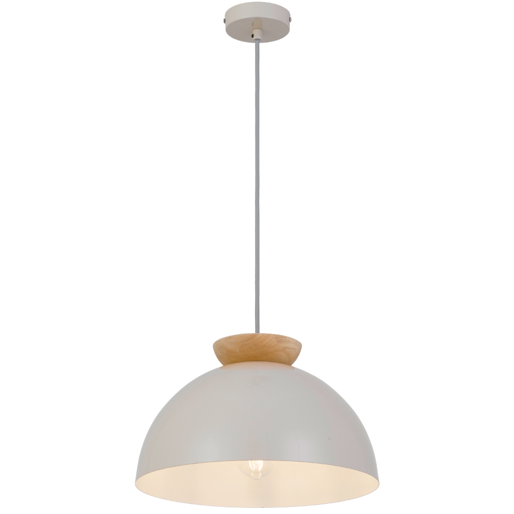 • The sovin 250mm large size single dome metal pendant light features a sleek light grey finish paired with natural oak accents, exuding Scandinavian charm.