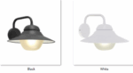 • Spy outdoor wall sconce updates the industrial farmhouse look arm with opal shallow glass black and white shade