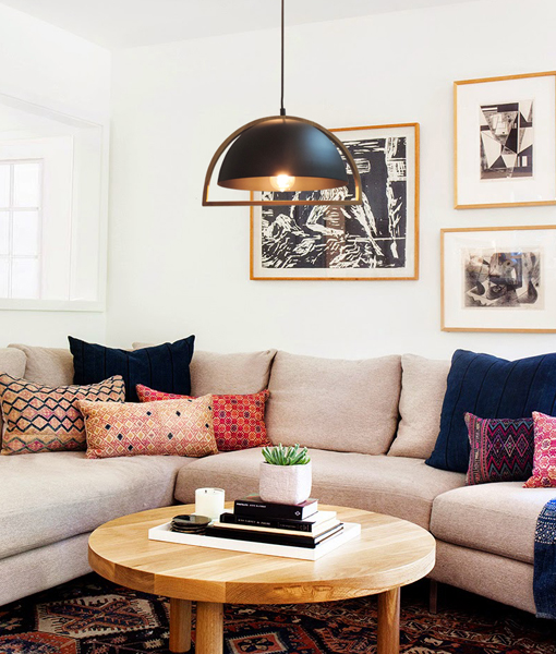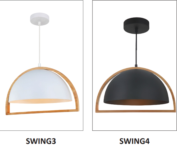 • Swing dome shape Pendant Light available in white with timber and black with timber .